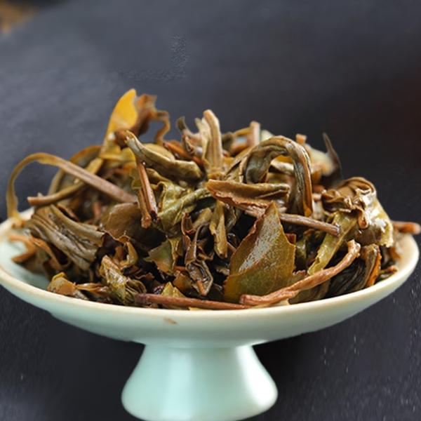 Made from ancient tea trees in Lincang, Yunnan, traditionally stone-pressed. Neat and elegant cake with plump leaves and visible buds, golden bright liquor showcasing sweet and refined flavor of Lincang tea area, perfect as high-end gift.
