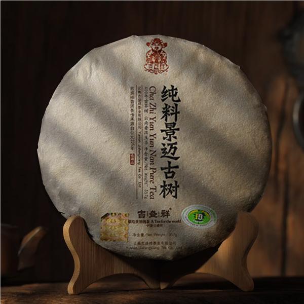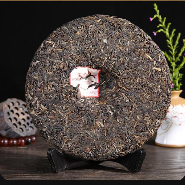 Made from mature leaves of ancient tea gardens in Jingmai, traditionally pile-fermented. Golden leaves with visible buds, reddish-brown bright liquor showcasing rich honey aroma and mellow smooth taste, standard compressed tea form.