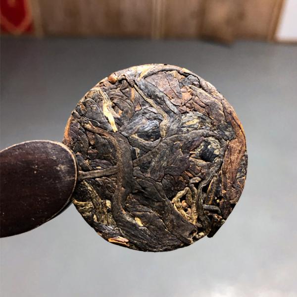 Made from Yunnan large-leaf tea variety, sun-dried with traditional processing into mini cake form. Moderate compression with plump leaves and visible buds, bright orange-red liquor showcasing sweet and mellow flavor profile. Mini cake size for daily consumption.