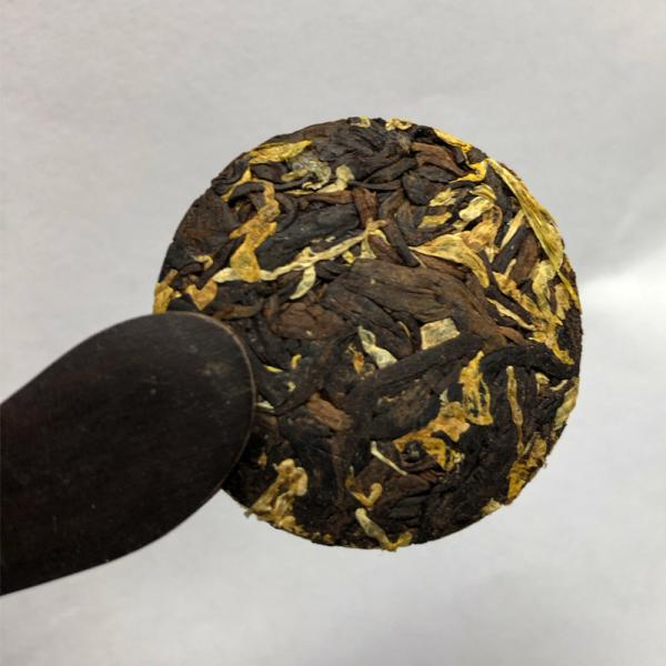 選用雲南陳年熟普茶青為基底,融合雲南杭白菊精心調配,傳統工藝壓制為迷你茶餅。茶餅鬆緊適度,茶湯紅亮透徹,呈現熟普醇厚與菊花清香的融合風味。規格為便攜小餅形態。